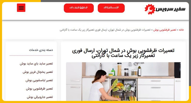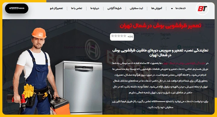 اگر بهدنبال مرکزی با ساختار سازمانیافته و پشتیبانی مرحلهبهمرحله برای تعمیر ماشین ظرفشویی بوش در شمال تهران هستید، وبسایت تعمیر بوش گزینهای قابل اتکا بهنظر میرسد. این مجموعه با تمرکز ویژه روی برند بوش و سالها سابقه فعالیت، سرویسی فراتر از صرفاً اعزام تعمیرکار ارائه میدهد.