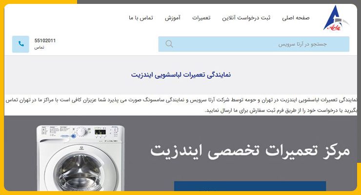 آرتا سرویس بهعنوان نمایندگی مجاز تعمیرات ماشین لباسشویی ایندزیت در تمامی مناطق تهران فعالیت دارد. این مرکز خدماتی چون اعزام سریع تکنسین، استفاده از قطعات اورجینال، گارانتی ۱۸۰ روزه و قیمت منصفانه ارائه میدهد و امکان ثبت درخواست بهصورت آنلاین یا تماس تلفنی فراهم است.