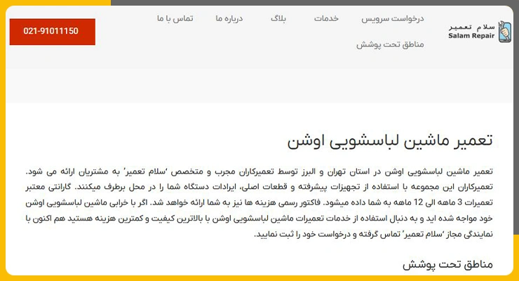 سایت تعمیرآل نمایندگی تعمیر لباسشویی اوشن در تهران است که خدمات تخصصی نصب، سرویس و تعمیر را بهصورت شبانهروزی و در محل مشتری ارائه میدهد. این مرکز با استفاده از قطعات اصلی و تکنسینهای آموزشدیده، مشکلات متداول دستگاه را رفع کرده و امکان ثبت درخواست آنلاین نیز فراهم کرده است.