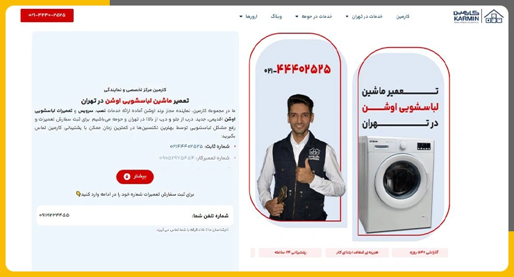 سایت کارمین مرکز تخصصی تعمیر ماشین لباسشویی اوشن در تهران است که تمرکز اصلی خود را بر تعمیر سریع و خدمات در محل گذاشته است. این مجموعه با داشتن تیمی از تکنسینهای حرفهای، عیبیابی دقیق و استفاده از قطعات استاندارد، سعی دارد تعمیرات را بدون نیاز به جابهجایی دستگاه و با کمترین زمان انتظار انجام دهد.