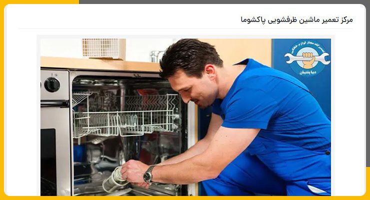 سایت دیبا پشتیبان ایرانیان مرکز تخصصی تعمیر ماشین ظرفشویی پاکشوما در تهران است و خدمات خود را شامل عیبیابی و تعمیر در محل با قطعات اصلی و پشتیبانی ۲۴ ساعته ارائه میدهد. گارانتی ۶ ماهه برای تعمیرات و صدور فاکتور رسمی از ویژگیهای این مرکز است.