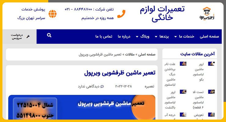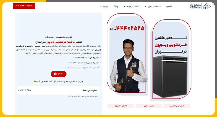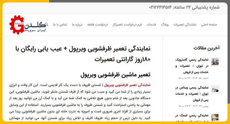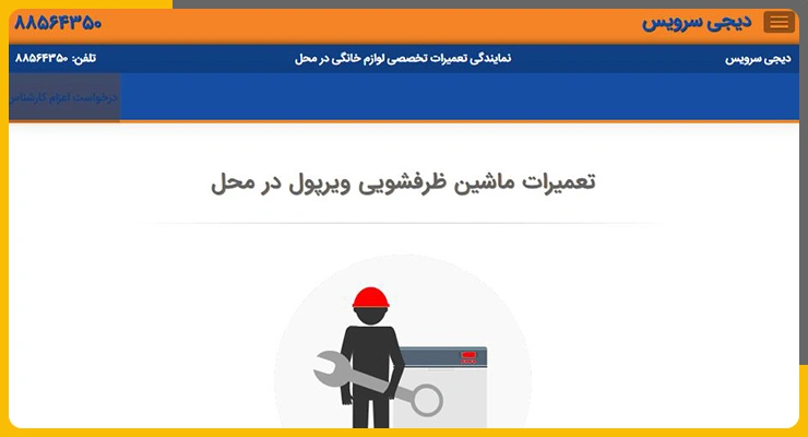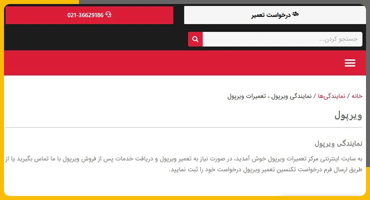 - امکان ثبت آنلاین درخواست یا مشاوره در صفحه مرتبط با تعمیرات ویرپول مشاهده نمیشود